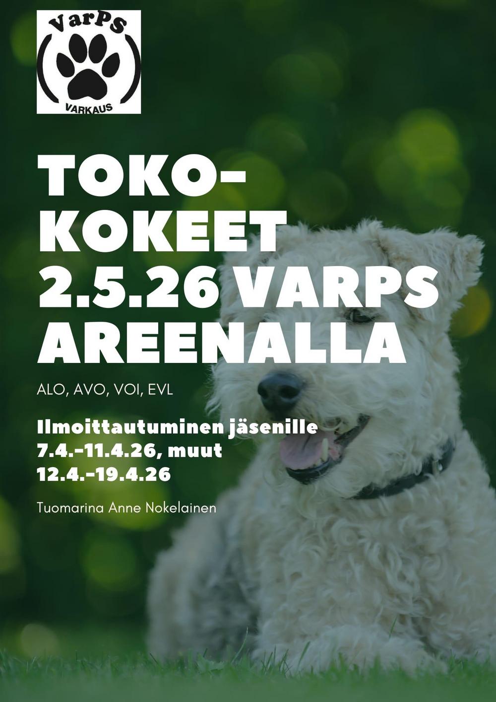 Kaikkien luokkien tottelevaisuuskoe 2.5.26 VarPS Areenalla.